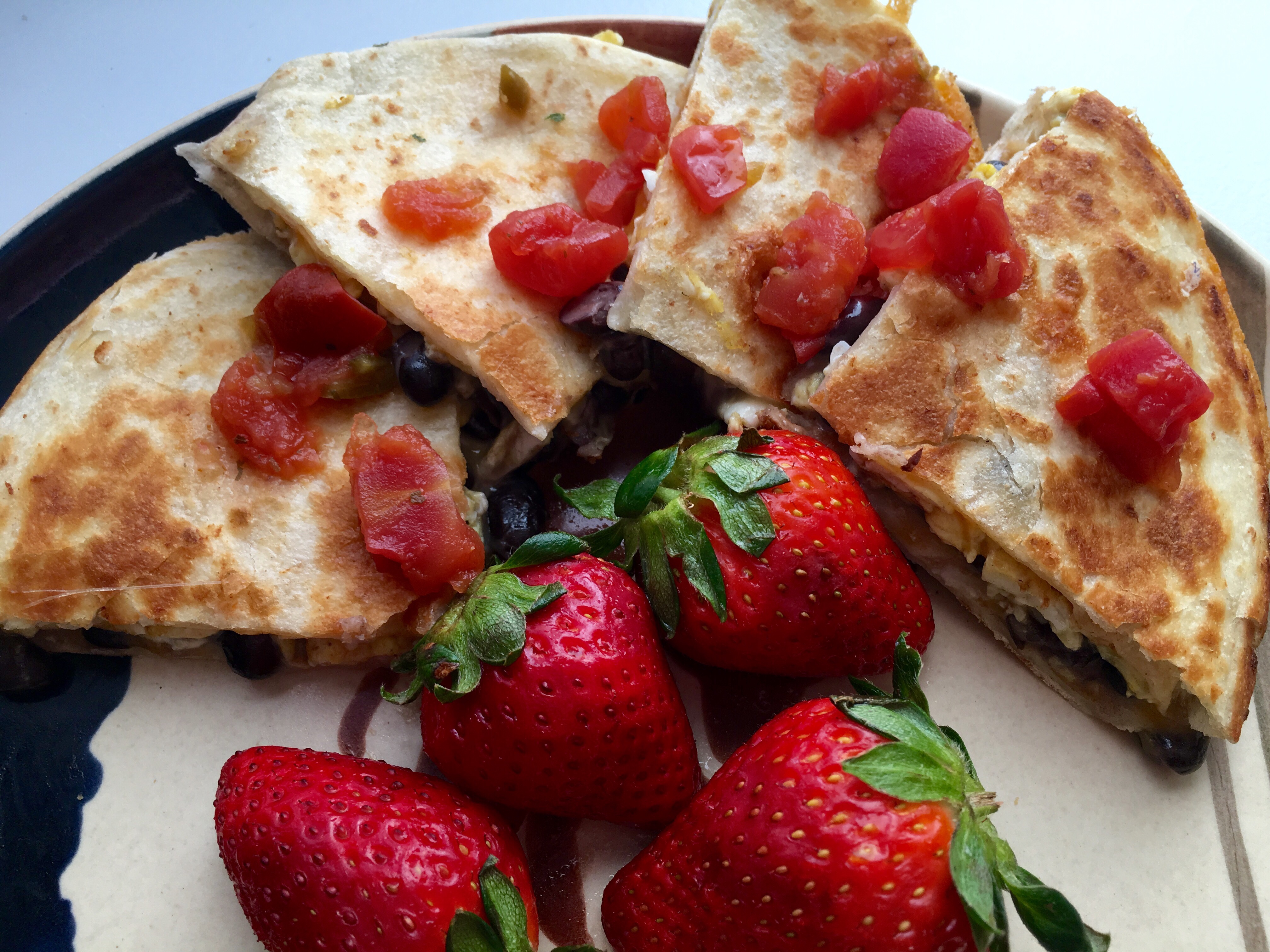 - Fry each side for a couple minutes, until tortillas brown and cheese melts. Be careful when you flip the quesadilla.